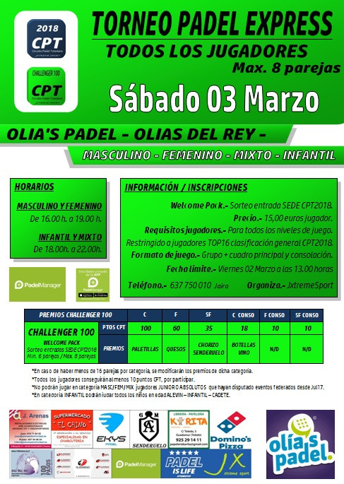 OLIA´S PADEL - CHALLENGER100 - TORNEO EXPRESS max 8 PAREJAS