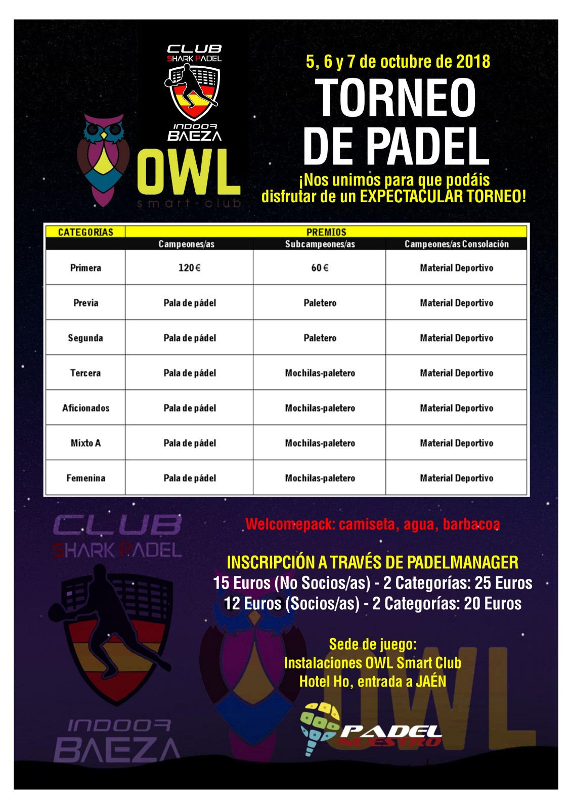TORNEO HO OWL SMART CLUB & CLUB SHARK PADEL INDOOR BAEZA
