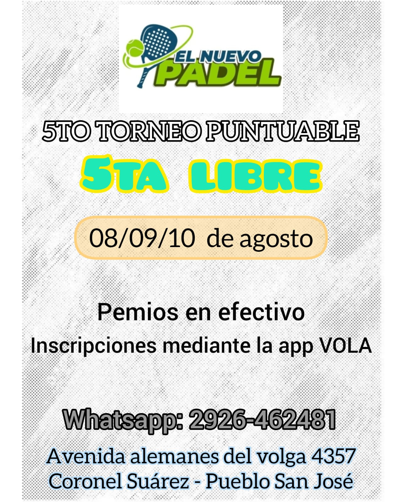 Regional de 5ta libre , 4ta Damas y 8va libre !!